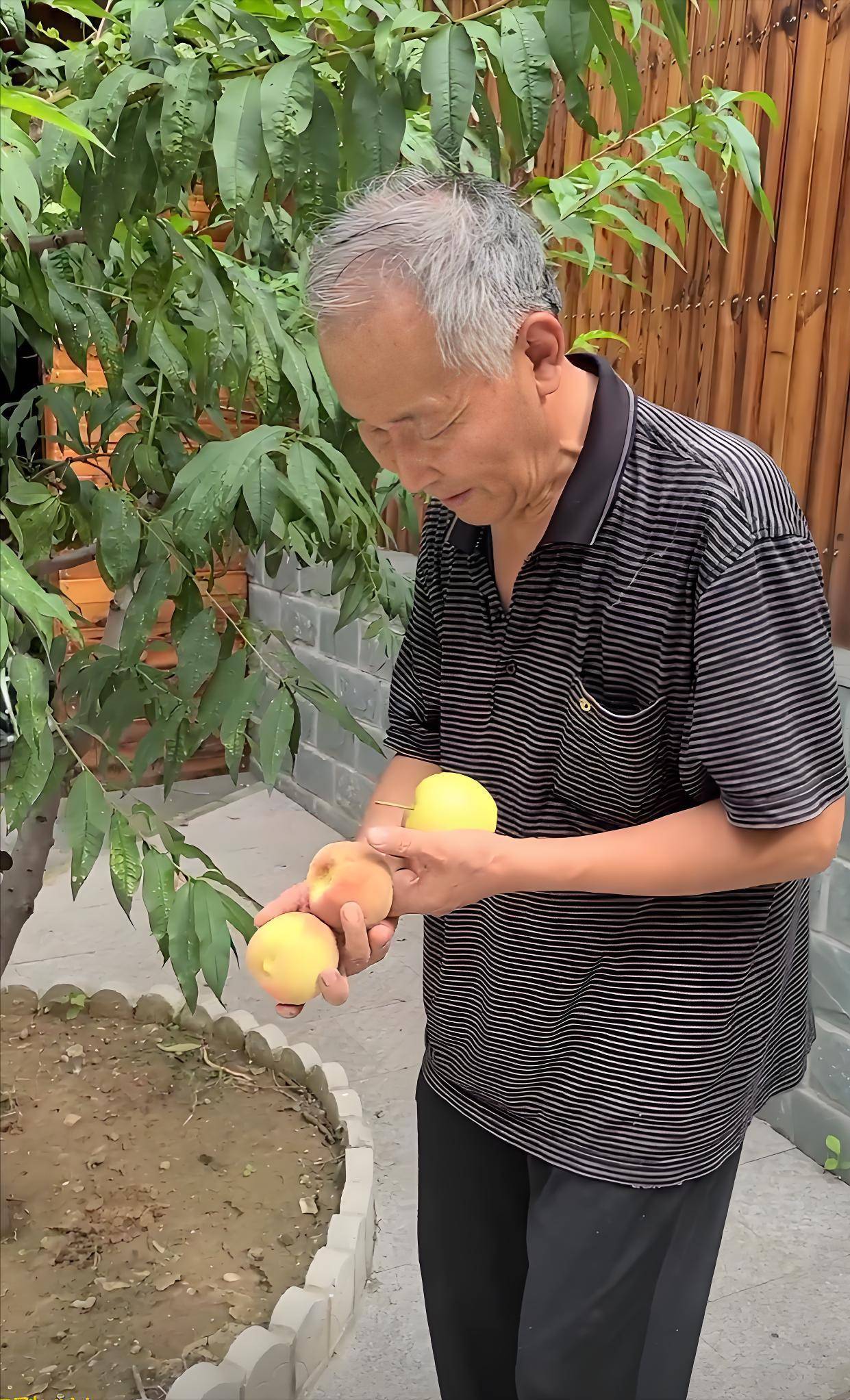2019年,刘家父母种的果树结果了,他们采摘新鲜的桃子、苹果、梨,给儿子一家送去。孙子孙女高兴得又蹦又跳。