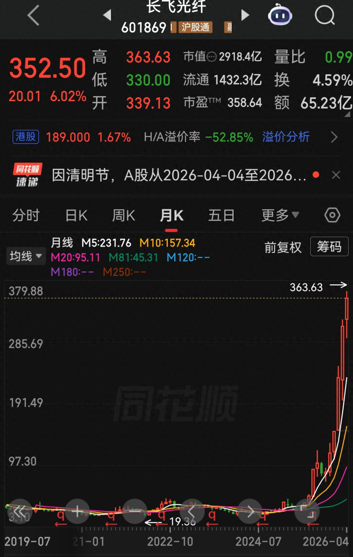 从行业地位来讲,长飞光纤是毫无争议的全球光纤龙头,从2016年至今,已经连续多年拿下全球光纤市占率第一的位置,国内市场份额也稳居前列,产品远销全球一百多个国家和地区,无论是预制棒、光纤还是光缆的产销量,都是全球第一,是行业标准的制定者和技术引领者,行业霸主地位难以撼动。在人气关注度上,长飞光纤更是整个光纤板块的灵魂标的,是资金抱团的核心,不管是机构、游资还是普通散户,都将其视为光纤板块的风向标,只要光纤板块启动,长飞永远是最先上涨、涨幅最大的那一个,市场人气和热度常年稳居板块首位。